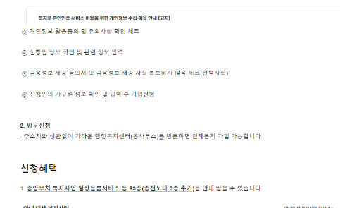 * 행정복지센터를 통해 방문하여 신청가능하지만, 온라인 복지로를 통해 가입하시면 시간도 절약되고 1분안에 가입가능하니 바로 가입신청하시면 됩니다.