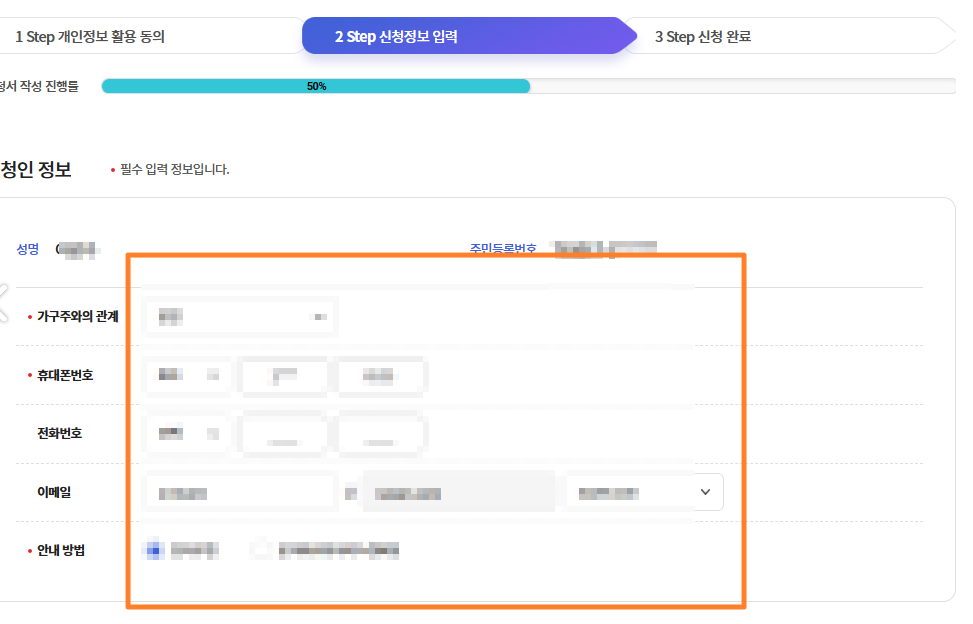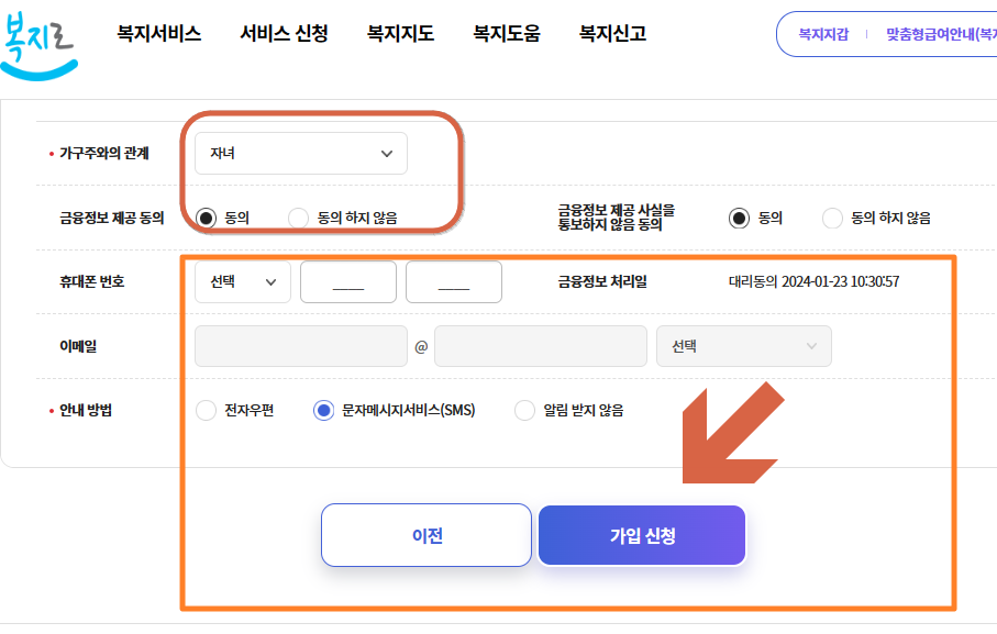 ⑥ 신청인의 가구원 정보 확인 및 입력 후 가입신청