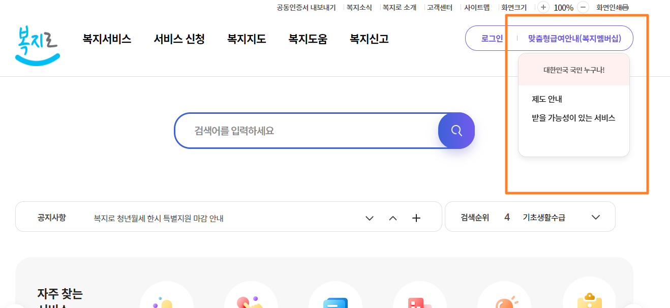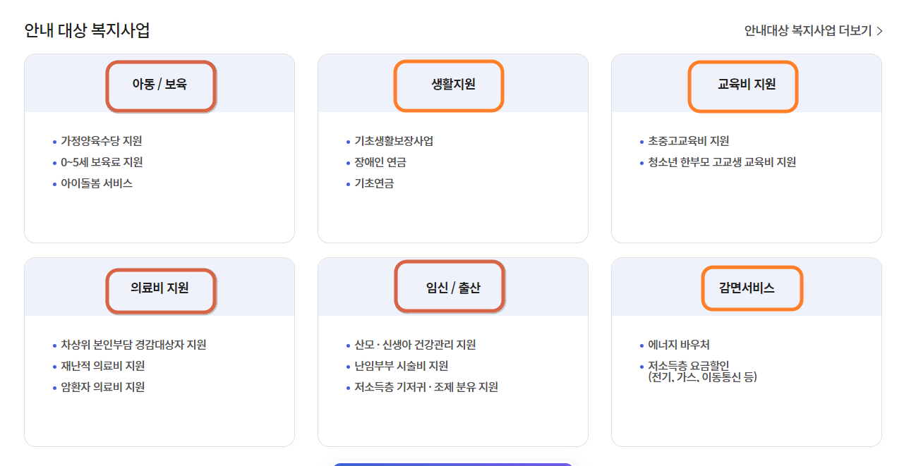 (국민이 받을 수 있는 복지서비스를 가입자의 소득.재산 등을 자동으로 분석해서 서비스를 추천해 줍니다.)
