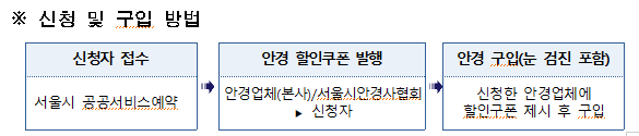 ☞ 신청 대상자에게는 안경할인 쿠폰이 휴대전화 문자를 통해 발급 됩니다.