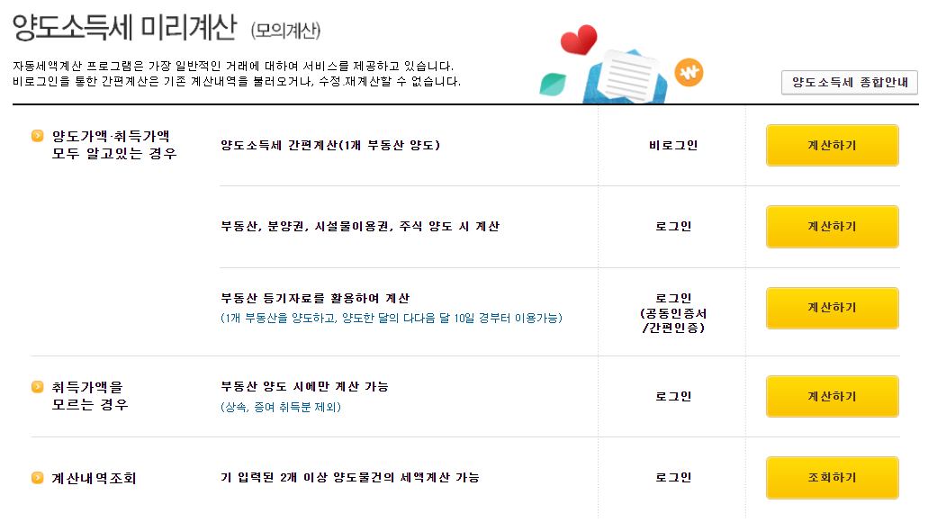 양도소득세는 다양한 경우의 수가 존재하기 때문에 양도소득세 계산기를 통해서 간편하게 계산이 가능하니,
