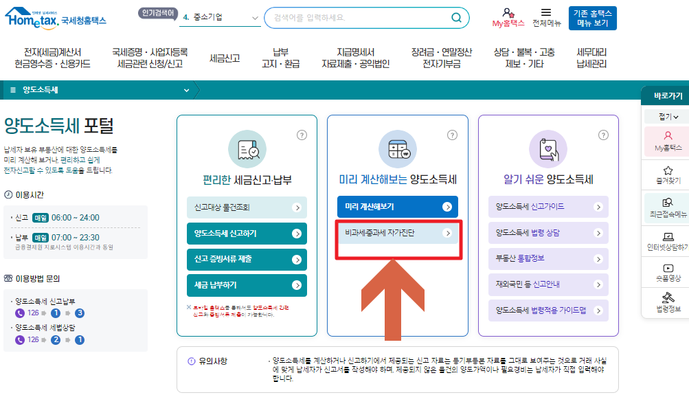 ㅁ 국세청 홈택스 > 비과세중과세 자가진단