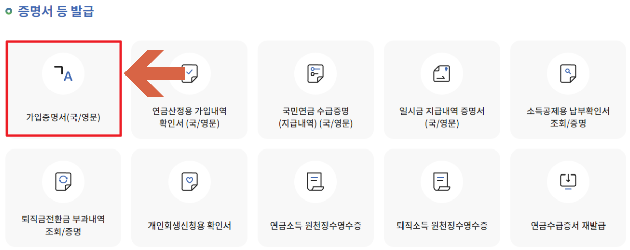 ❹ 가입증명서(국/영문) 메뉴를 선택합니다.