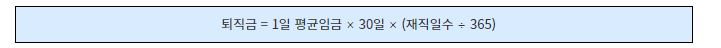 👉 하루평균임금 * 30일 (재직일수÷365일) = 퇴직금
