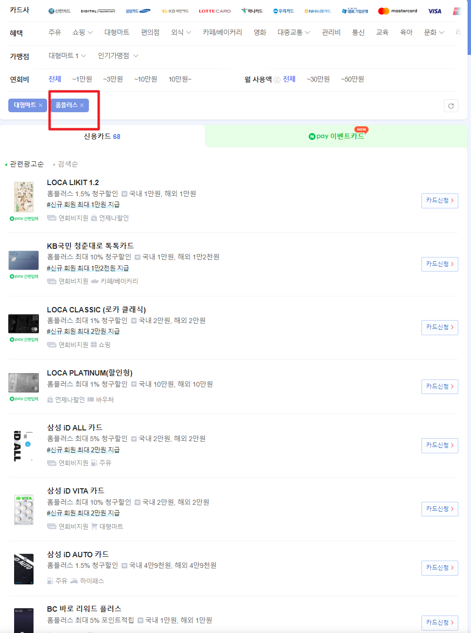 홈플러스에 쇼핑을 많이 하신다면 제휴사 할인도 꼭 챙겨보셔야 합니다. 신한, 국민 등에서는 최대 10% 청구 할인이 된다고 하니 확인해 보시고 경제적 혜택 받으시기 바랍니다.